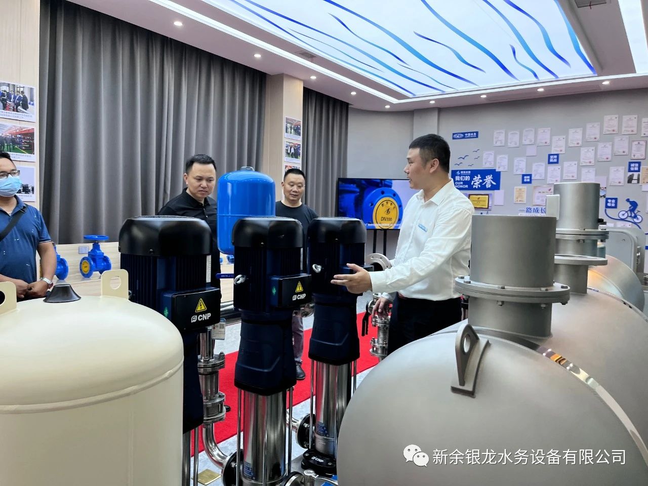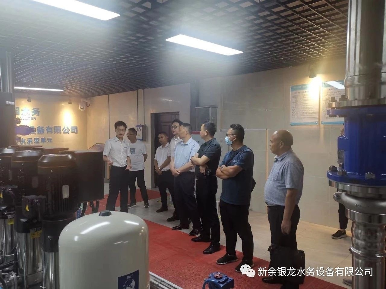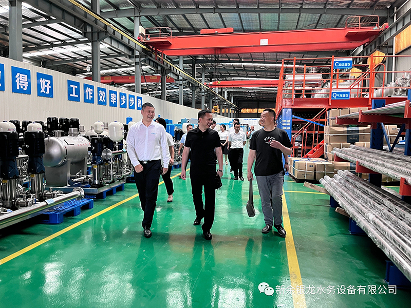 目前我司與懷化新晃已達(dá)成戰(zhàn)略合作,6月21日下午,新晃縣城市管理和綜合執(zhí)法局黨組書(shū)記、局長(zhǎng)黃超及懷化銀龍水務(wù)有限公司總經(jīng)理姚曉明一行六人蒞臨我司實(shí)地考察,參觀交流并指導(dǎo)工作。黃局一行在我司總經(jīng)理陳科宇等公司領(lǐng)導(dǎo)的陪同下,先后參觀了公司機(jī)械生產(chǎn)車間、二次供水設(shè)備展廳、二次供水監(jiān)控管理平臺(tái)及新余市城北商務(wù)廣場(chǎng)標(biāo)準(zhǔn)化泵房示范單元。